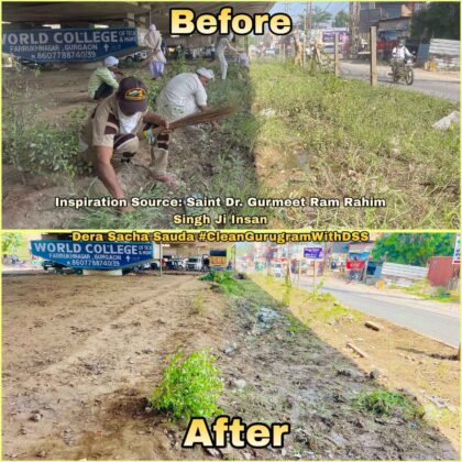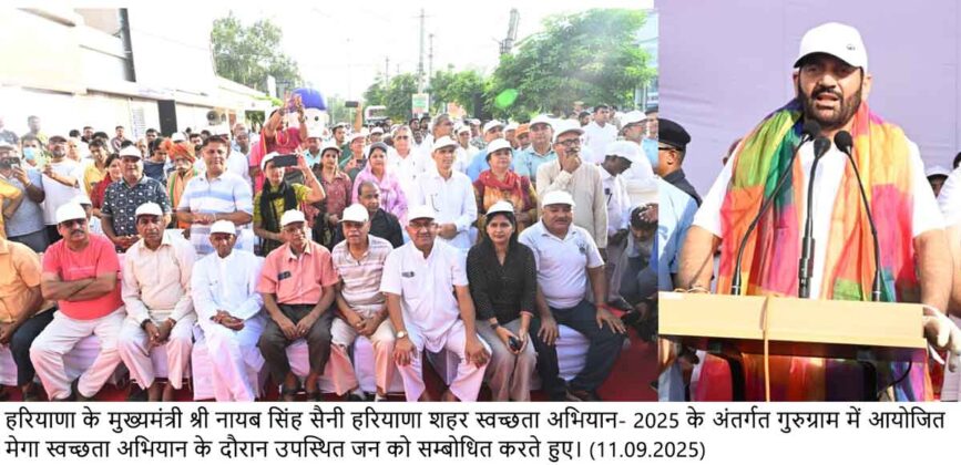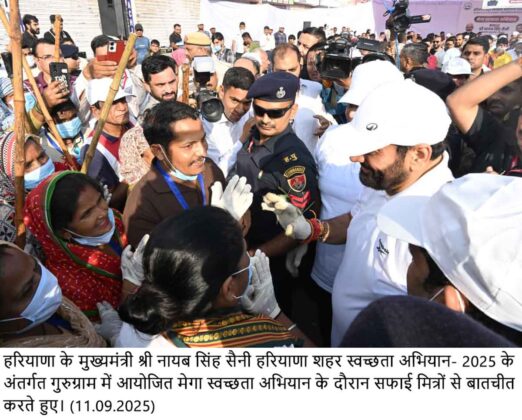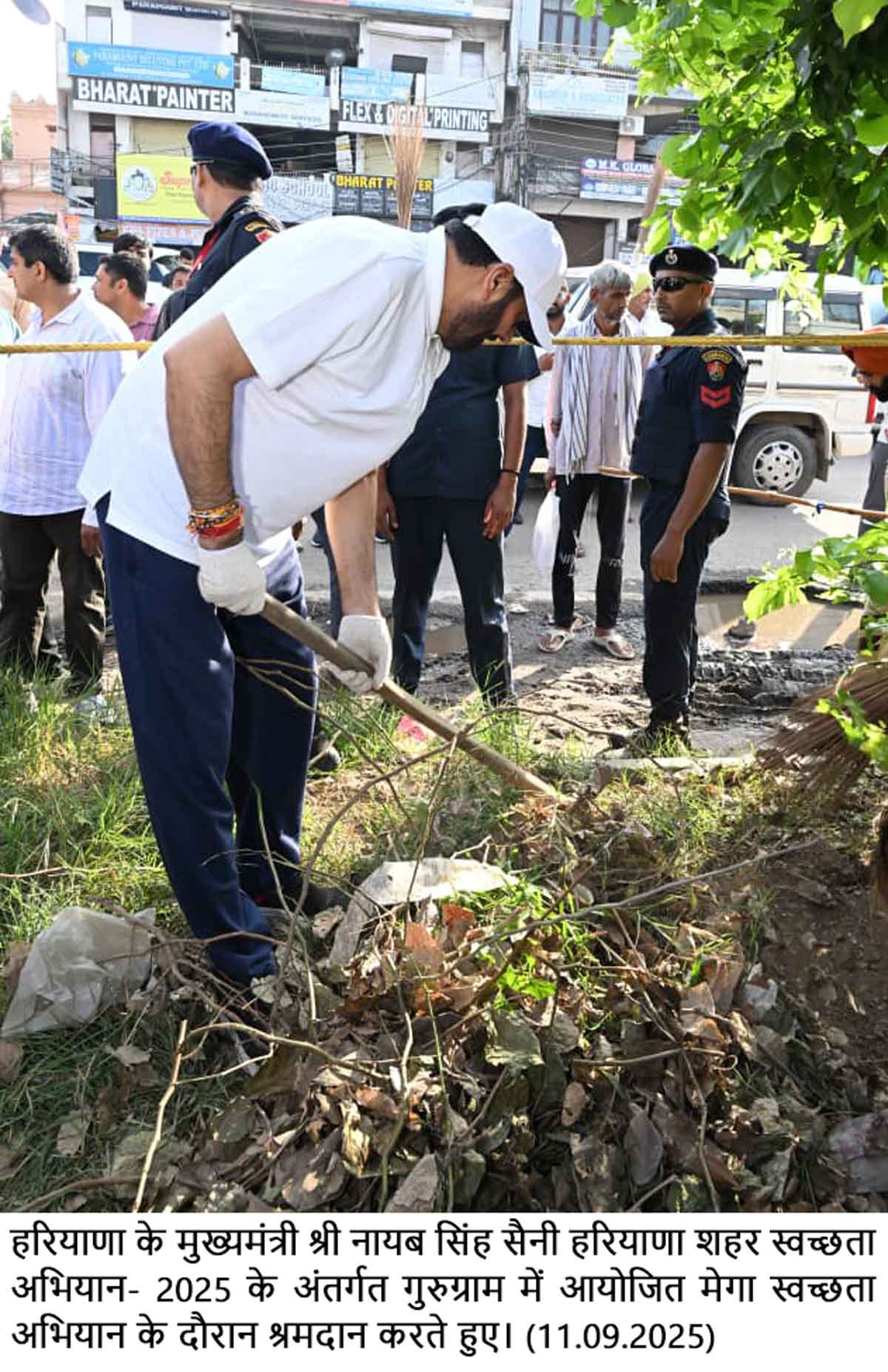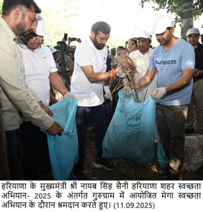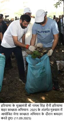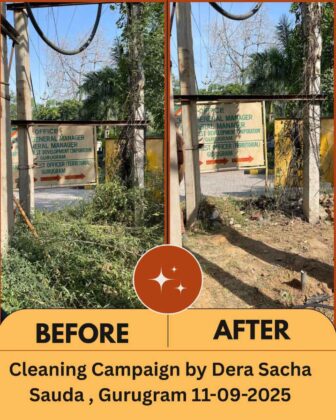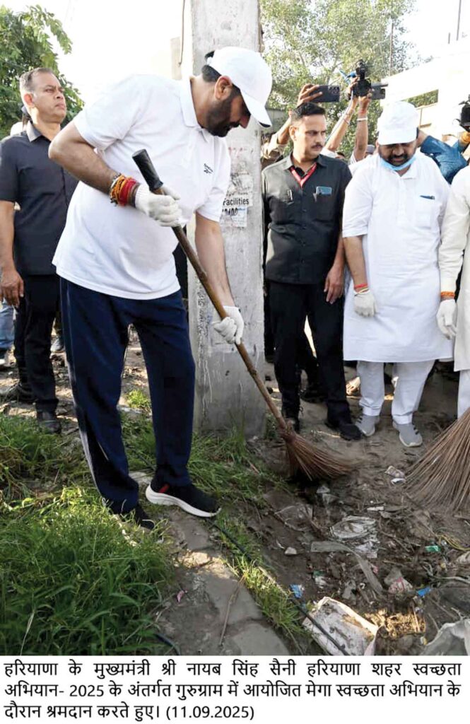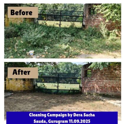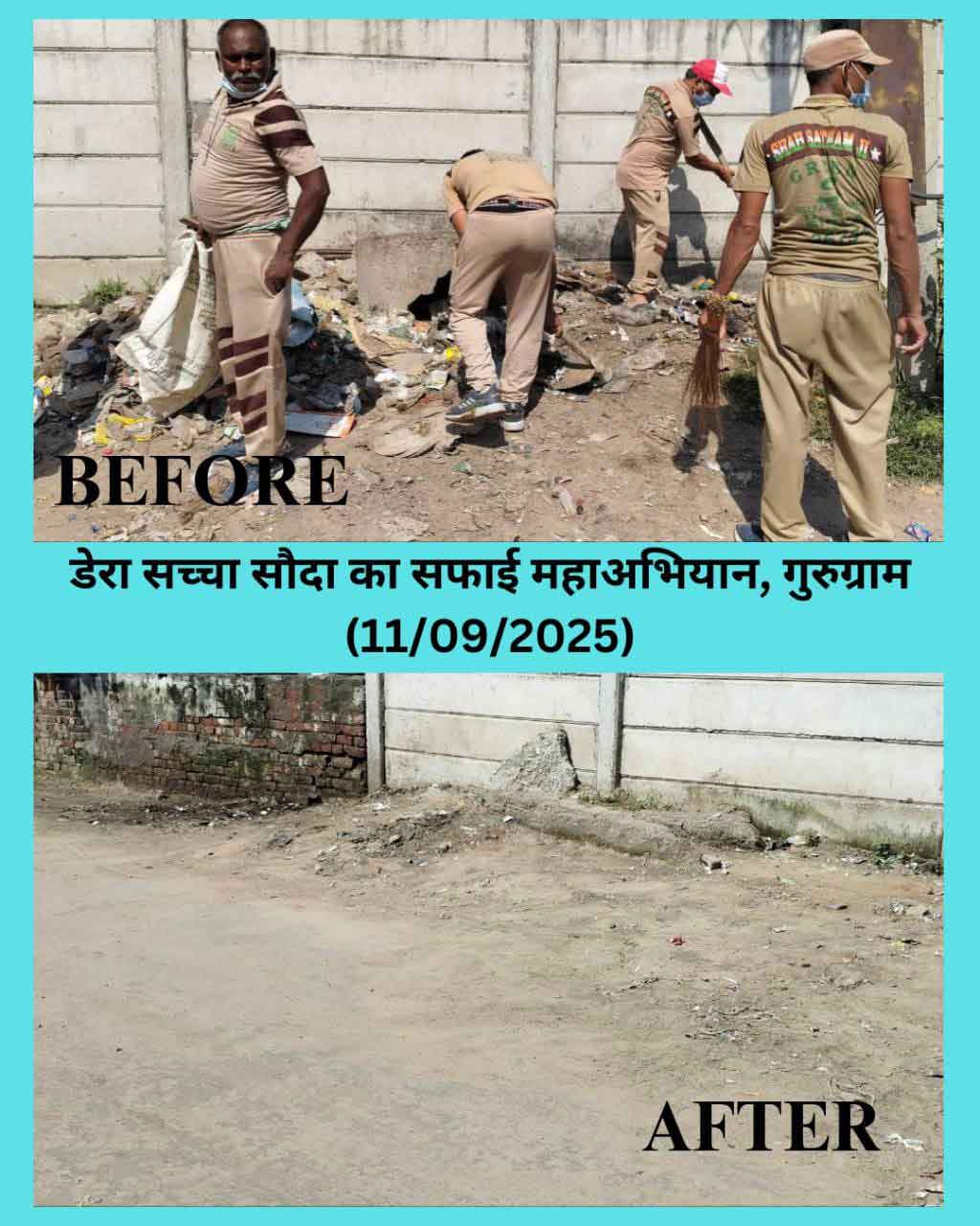 हरियाणा शहर स्वच्छता अभियान 2025 के तहत मुख्यमंत्री नायब सिंह सैनी के आह्वान पर डेरा सच्चा सौदा की साध-संगत ने अन्य संस्थाओं के साथ मिलकर 11 सितंबर (वीरवार) को गुरु द्रोणाचार्य की धरती गुरुग्राम में स्वच्छता अभियान में सहयोग किया। डेरा सच्चा सौदा के पूज्य गुरु संत डॉ. गुरमीत राम रहीम सिंह जी इन्सां ने शाह मस्ताना जी-शाह सतनाम जी धाम, डेरा सच्चा सौदा, सरसा से आॅनलाइन गुरुकुल के माध्यम से स्वयं झाड़ू लगाकर स्वच्छता अभियान में सहयोग किया।