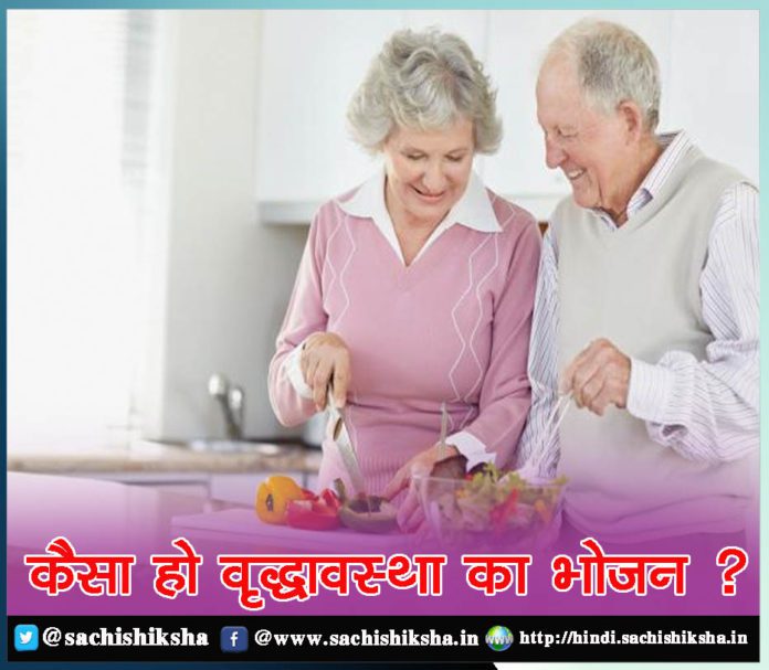 Old Age Diet वृद्धावस्था में भोजन सादा व सुपाच्य होना चाहिए लेकिन उसमें सभी आवश्यक पोषक तत्वों का समावेश अवश्य ही होना चाहिए। वृद्धों को शारीरिक श्रम की कमी की वजह से कैलोरी की कम आवश्यकता होती है, कोलेस्ट्रोल की मात्रा बढ़ने से कम वसायुक्त भोजन की आवश्यकता होती है और पाचन शक्ति कमजोर होने से गरिष्ठ भोजन पच नहीं पाता।