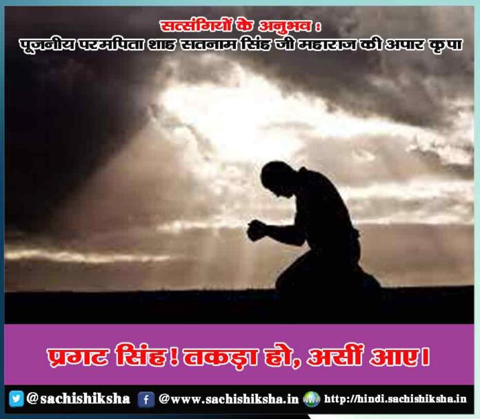 वह दोनों पीछे हट गए। अभी मैं संभला ही था कि एक ने मेरी तरफ पिस्तौल सीधा करके ट्राईगर पर उंगली रख ली। दूसरे ने चाकू तान लिया तथा तीसरे ने बैग पकड़ लिया। उस संकट की घड़ी में मुझे अपने सतगुरु परम पिता शाह सतनाम सिंह जी महाराज की याद आई। मैंने अपनी मदद के लिए अपने सतगुरु परम पिता जी को ‘धन धन सतगुरु तेरा ही आसरा’ नारा लगा दिया। जब मैंने कुल मालिक का नारा लगाया तो परम पिता जी की मीठी-मीठी आवाज आई, ‘प्रगट सिंह! तकड़ा हो, असीं आए।