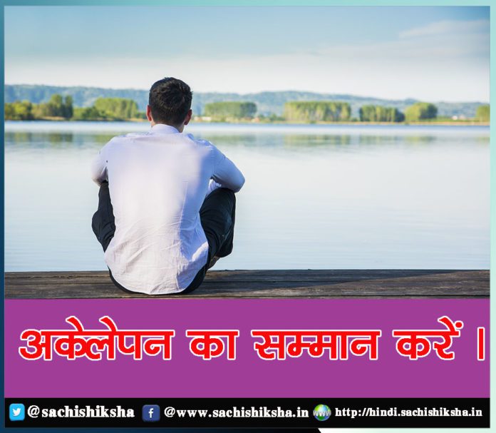 अकेलेपन का सम्मान करें। प्रत्येक व्यक्ति का व्यक्तिगत जीवन होता है। उसका एकांत होता है, उसकी अपनी खुशियां और अपना अकेलापन होता है। पूरे दिन में कुछ समय उसके अपने निजी होते हैं या पूरे महीने में कुछ दिन उसकी निजी स्वतंत्रता के होते हैं। जैसे-जैसे मनुष्य का विकास होता जाता है, ज्ञान, शिक्षा, औपचारिकता के दबाव में उसका मूल रूप खो जाता है। उसकी चंचलता, बाल सुलभ जिज्ञासा खत्म होती जाती है।