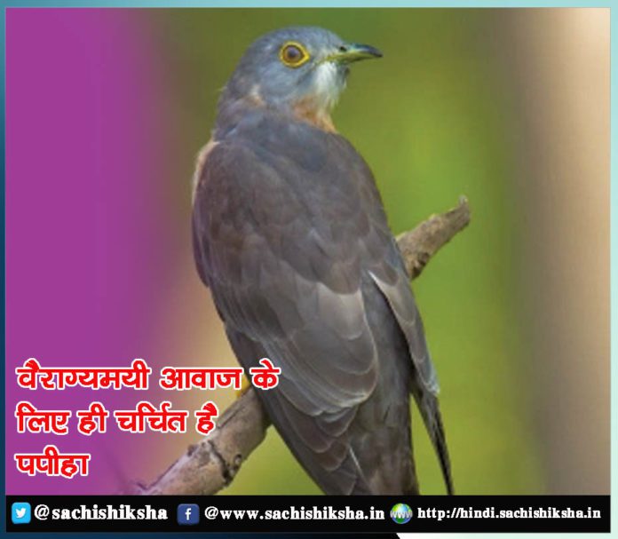 कोयल की तरह ही अपनी विशिष्ट आवाज के लिए चर्चित एक और पक्षी है जिसे ‘पपीहा’ कहते हैं। यह पक्षी कबूतर के आकार का होता है, लेकिन होता है कुछ दुबला-पतला। इसकी दुम लम्बी होती है। इसका रंग ऊपर से ग्रे तथा नीचे से सफेद होता है, जिस पर भूरी-भूरी धारियां पड़ी होती हैं।